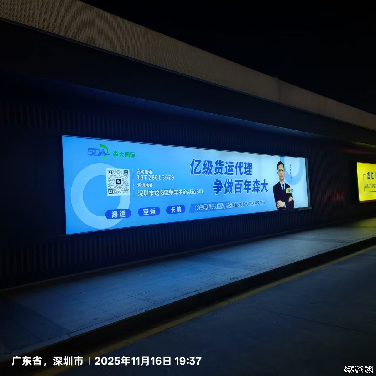 在全球贸易蓬勃发展的今天,森大国际物流 凭借12年跨境物流领域的深厚积淀,以专业、高效、可信赖的服务,成为众多企业走向国际市场的坚实后盾。此次,森大物流选择与深圳户外广告领域的领军企业——广信和传媒 合作,在华南城核心商圈强势投放户外墙体广告,彰显品牌实力,传递行业领先的服务理念。
